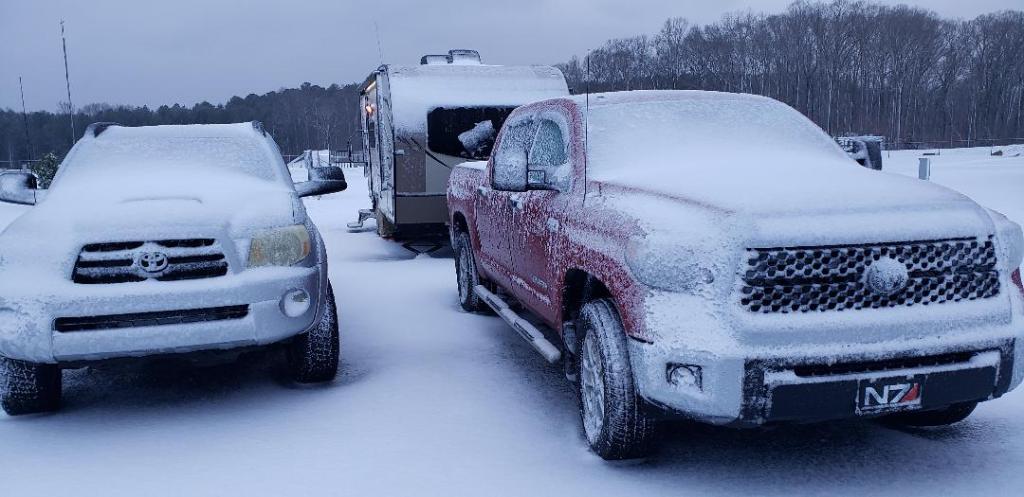 This isn’t the post I originally had planned for this week; that one has been postponed until the 27th. (A winter storm takes precedence, LOL.) Kenn and I hauled our travel trailer to South Carolina on Thursday, January 13th. This is going to be a longer stay for me but I’ll go into that in another post. We always keep an eye on the weather for our destination when traveling but apparently didn’t pay as much attention as we usually do. It wasn’t until I heard the weather reports on the drive up that I realized that there was a real chance that our destination would receive snow and/or ice.