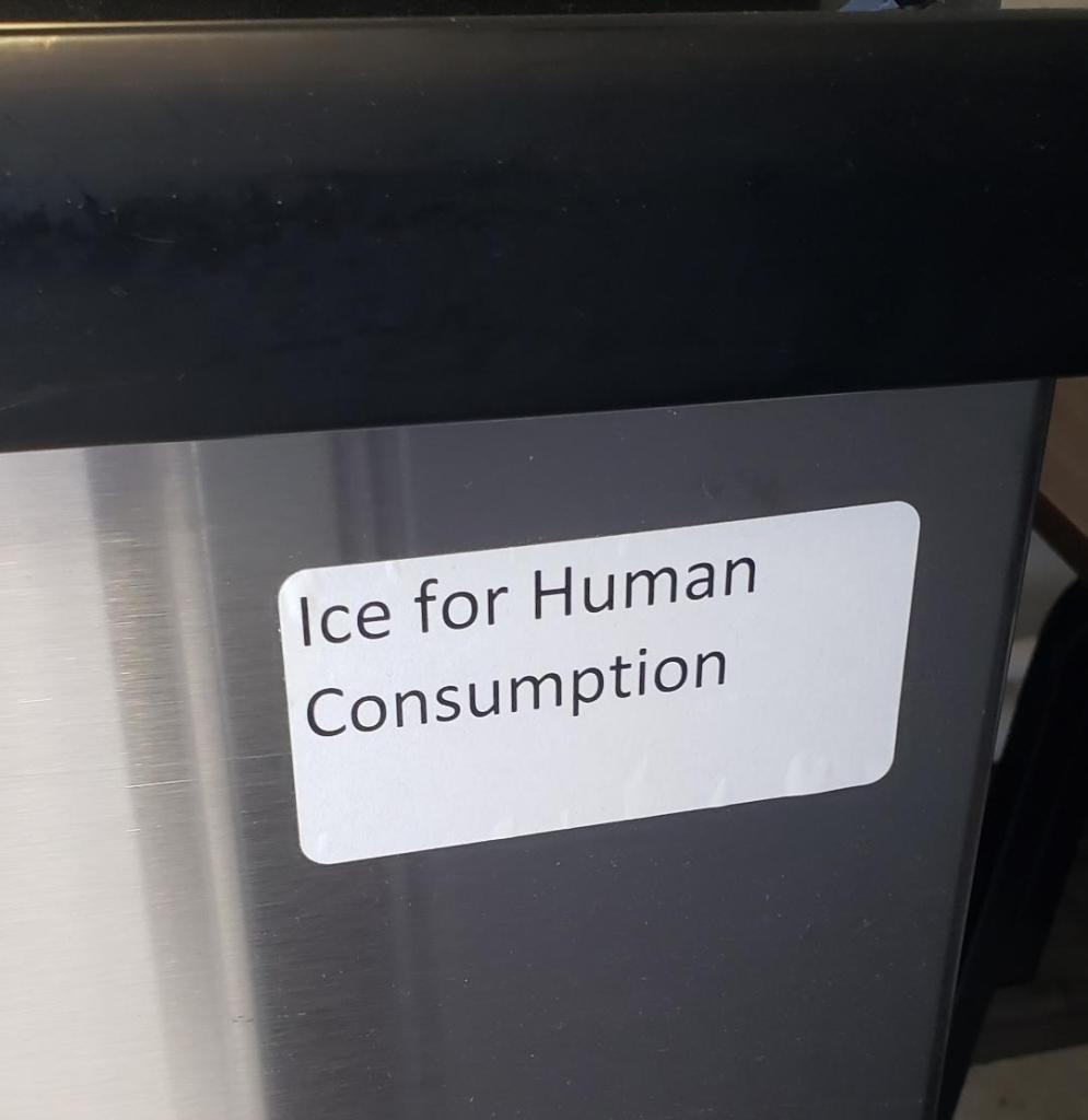 I recently started a part-time job. This sticker is on the ice machine in the break room. I haven’t had a chance to ask why. Have they had a problem with non-humans consuming it? Inquiring minds want to know.
