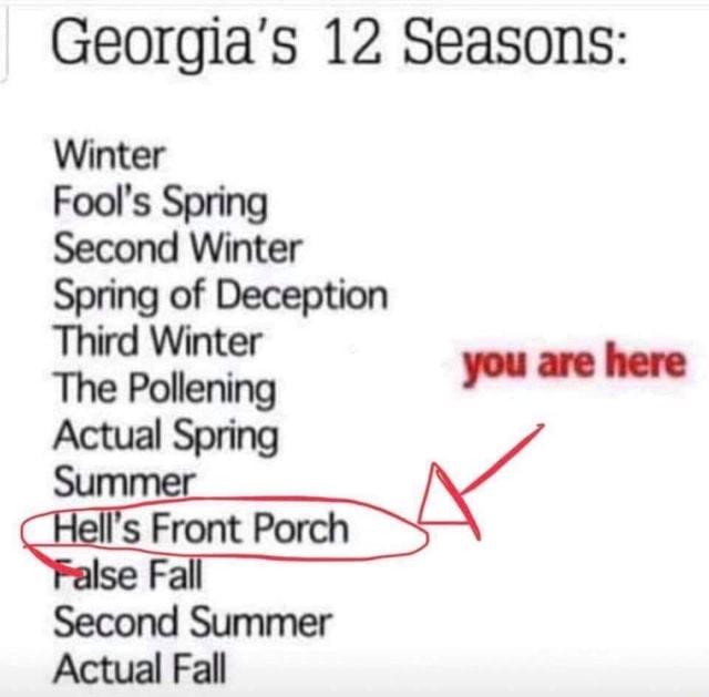 According to Dante’s Inferno, there are nine levels of hell. I’m here to tell you that Dante was wrong; there are actually ten levels. The tenth level is August in the state of Georgia. True, here in the South we don’t have four seasons, we have two-ish. But August… August is special.