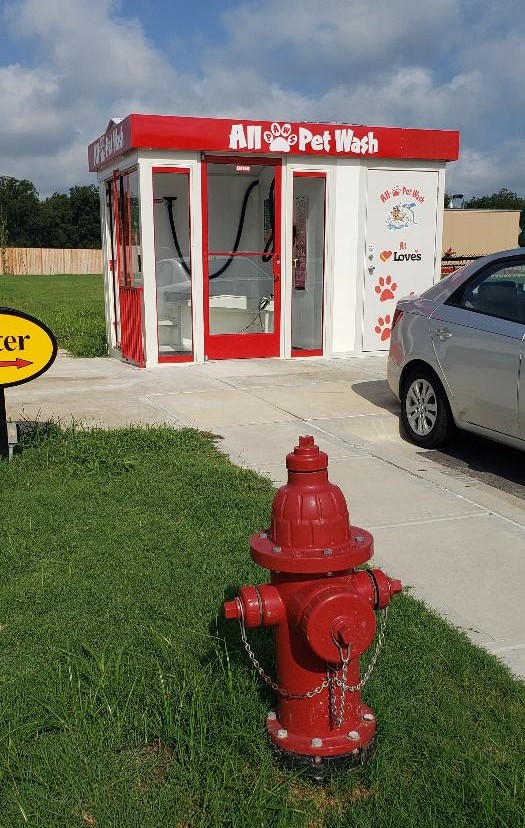 We recently stopped at a newer Love’s truck stop where they had a Pet Wash. I thought it was hysterical – and the fire hydrant in the front made it even funnier. (Side note: they also had a special gated area where RVers could park over night. We’ll be looking into this as an option on our travels.)
