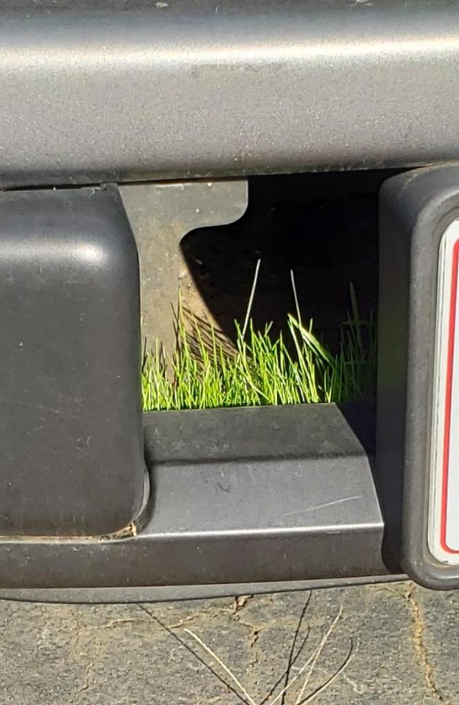 My part-time job is at an agricultural center. Our work trucks can really take a beating because when we say we’re “in the field”, it’s a literal field (or grove, or orchard). I had to laugh earlier this week when I noticed at least two of the trucks have grass growing in their grills.😂 To paraphrase Ian Malcolm in Jurassic Park, “life found a way”.