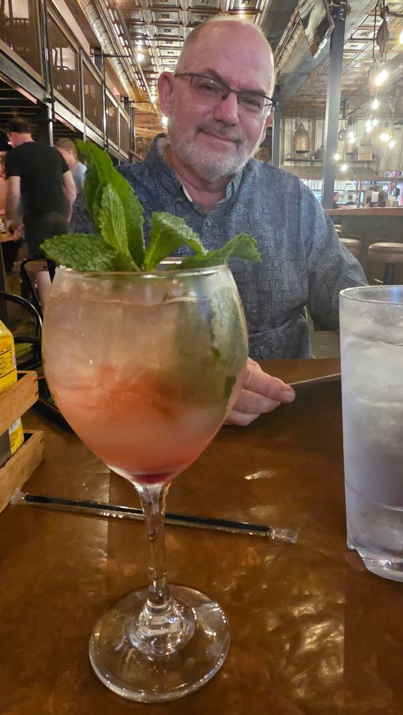 The first day, we ate at Prohibition Kitchen Gastropub. I loved the vibe of the decor, and the food was good. I had the PK Poutine just so I could try pork belly. I think I would have liked the pork belly better if it had been crispy. I also had a Hibiscus Spritz (Elderflower, lemon, simple syrup, mint, hibiscus, sparkling wine) and Kenn and I split a bread pudding for dessert. I’ve never met a bread pudding that I haven’t liked; this one, while good, had a sugary crust that made it a bit too sweet for my taste, and that’s saying a lot.