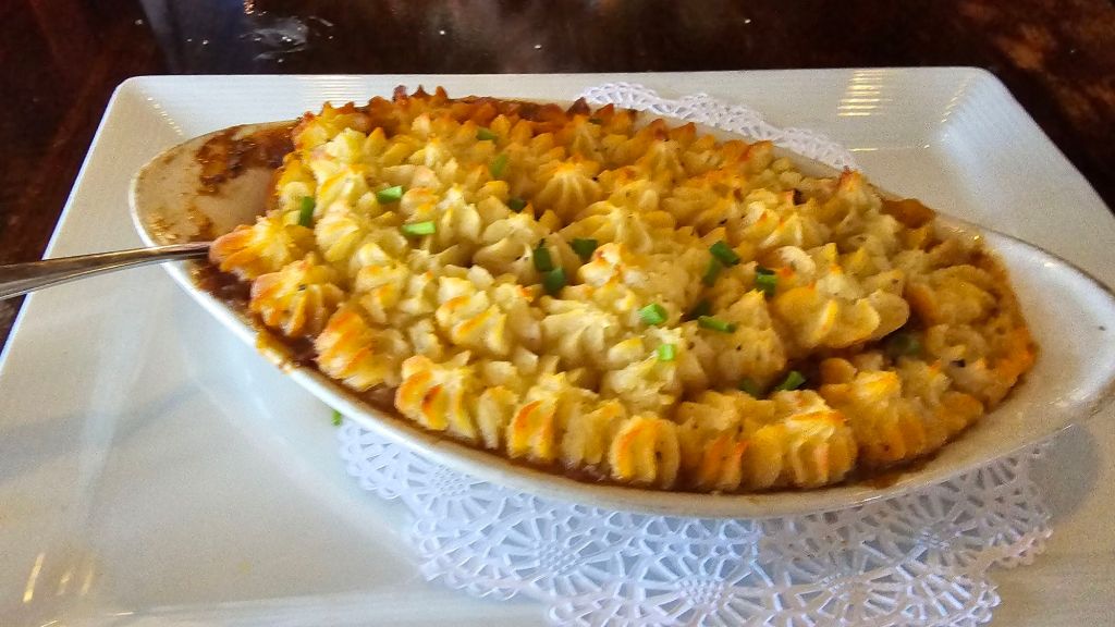 We love a good Irish pub, but the only two we visited with any regularity (one in Savannah, GA and the other in Fernandina Beach, FL) have both closed. So, of course, we had to eat at Meehan’s Irish Pub; I hope it survives our visit since the others have not. We started out with an order of Irish Chips (aka fries) and I had a yummy Shepard’s Pie made with beef and lamb. I would have loved to try their bread pudding, but since I had chowed down on the chips, I had no room left. But, rather than have no dessert, we stopped by Mayday and picked up pints of ice cream to take back to the camper for later. (Mint chocolate chip for Kenn and salted caramel for me.)