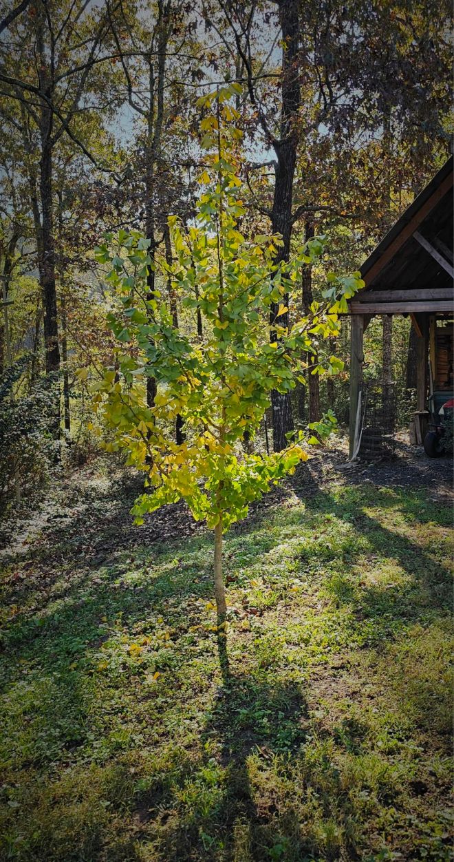 I have had a life-long fascination with ginkgo trees due to my love of dinosaurs; fossil records indicate that ginkgos have been around since dinosaurs roamed the earth. (I recently learned that ginkgos were around before dinosaurs.) Four years ago, Kenn gifted me a ginkgo of my own which is just starting to turn the beautiful yellow they are known for.